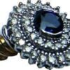 This is a cluster ring with an attractive design made up of a large Ceylon yellow sapphire in the center surrounded by diamonds.