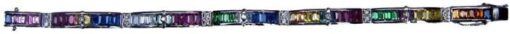 Multicolored full round bracelet with Ceylon (Sri Lanka) precious stones,Brazilian Emeralds and diamonds,set in 18ct white gold.Total weight-18g.Weight of gemstones-15carats.Weight of diamonds-30 points.