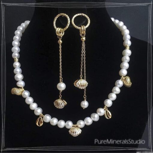 Sold By: Pure Mineral Studios Categories: Gemstone Jewelry, Minerals, Set Tags: Earrings with pearl, handcrafted earrings, handmade earrings, handmade necklace, Pearl